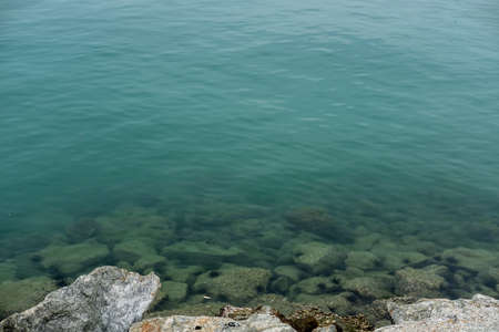 coast rocks and clear transparent sea water, barcelona, spain