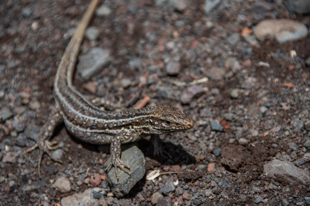 Female of Lizard Gallotia galloti (Western Canaries Lizard) close-up in natural habitat. Shallow depth of field.