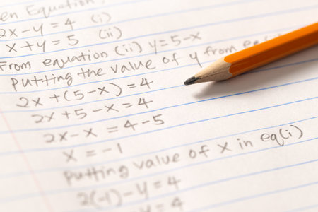 Pencil on algebra mathematic formula exercise test paper in education school.