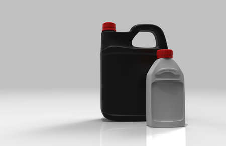 Canister and bottle of oil for brakes isolated on background.3D rendering.