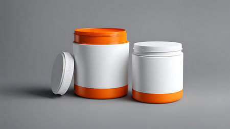 Two plastic canisters on beige background
