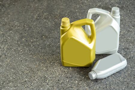 Motor oil in plastic canisters isolated on white