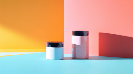 Mockup of two beige and pink containers on white background