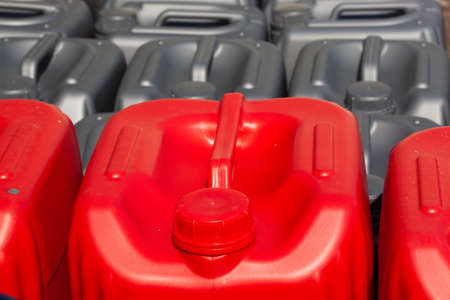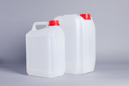 Plastic jerry can on gray background