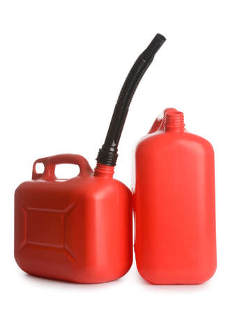 Two plastic fuel containers isolated on white background