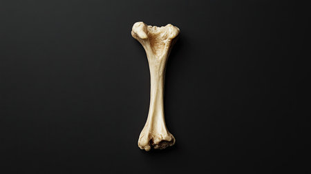A detailed isolated bone segment is artistically placed in the center of a black background, showcasing its texture and anatomical features for artistic and scientific purposes.
