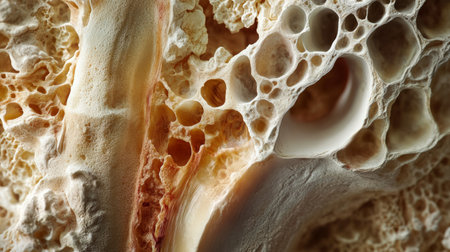 Bone structure, macro shot. Spongy texture of human body bone tissue, Internal organs