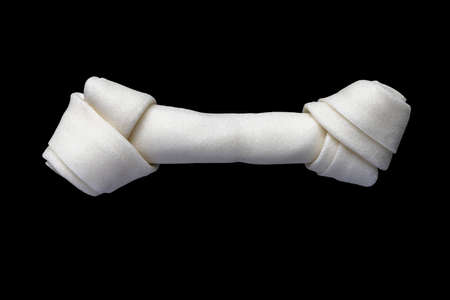 A Isolated Rawhide Dog Chew Bone on a black background table