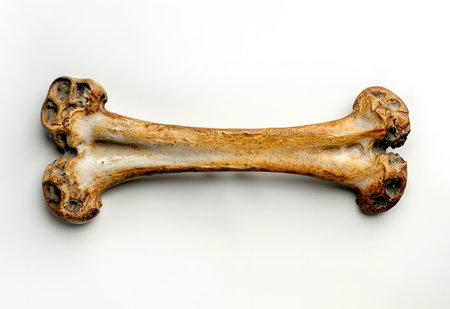 A close-up illustration depicts a white bone against a light blue backdrop. The object is rendered with smooth gradients, suggesting a clean and modern design. The composition is straightforward, suitable for various applications, including advertising and educational content. The image provides copy space for text.
