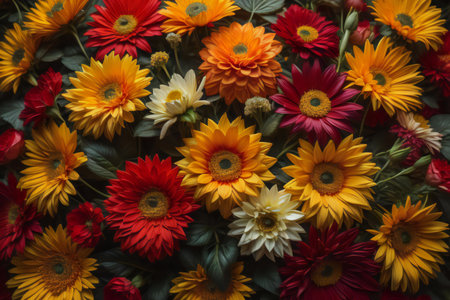 Colorful dahlias, chrysanthemums and daisies