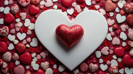 Valentines day background,heart shaped candies,sprinkles,top view