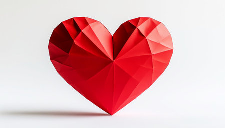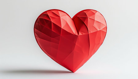 Low poly red heart with geometric facets on a white background.