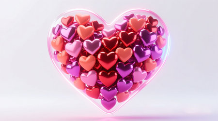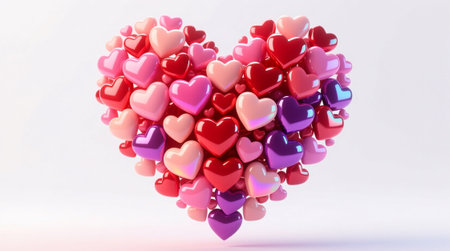 Vibrant Heart Shape Made of Glossy Gradient Hearts on Clean White Background