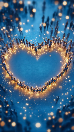 Heart made from little lights in woman hand