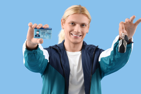 Car driver license with photo. Id card, person data. Flat style cartoon illustration vector