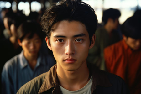 Portrait of a handsome young Asian man looking at camera.