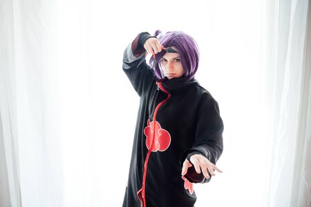 Girl cosplayer with purple hair anime Japan