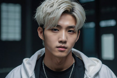 Portrait of a handsome asian man with short hairstyle.