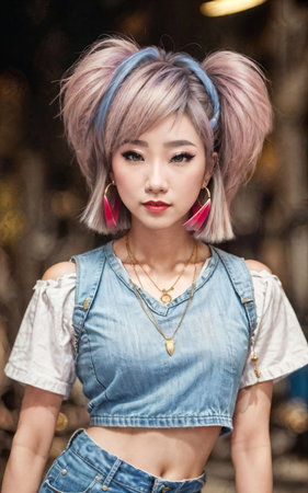 naughty young Thai asian woman with trending fashion style cloth , generative AI
