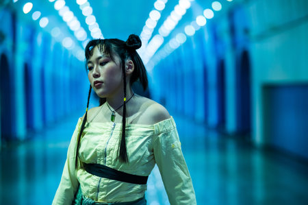 Portrait of an Asian young woman in a subway crossing