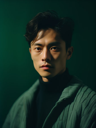 Portrait of a handsome young asian man in a green sweater