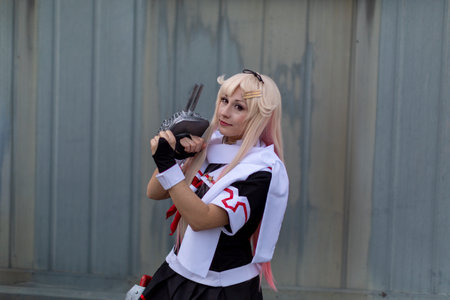 Lucca, Italy - 2018 10 31 : Lucca Comics free cosplay event around city Kantai world of warship anime girl. High-quality photo