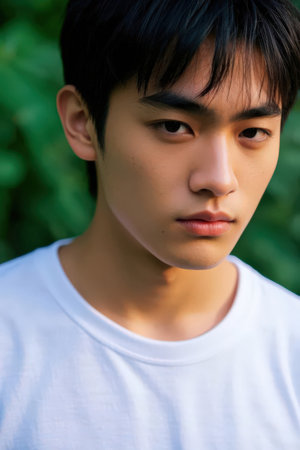 Portrait of a young asian man with white t-shirt