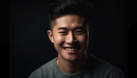 Portrait of a happy asian man smiling on black background.
