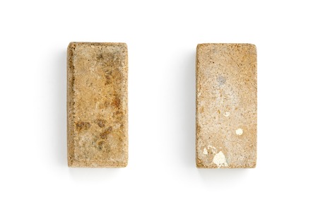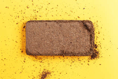 soil texture close up. mock up. coconut briquette on a orange background.