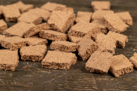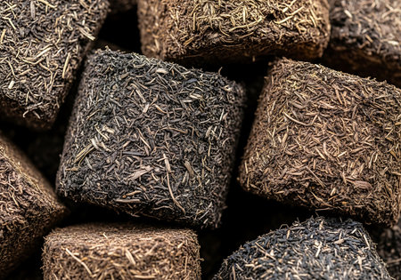 A macro shot showcases the intricate detail and earthy tones of dried herbs pressed into compact cubes, ready for cooking.