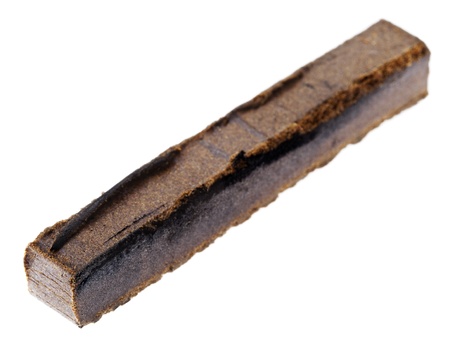 A 10 grams piece of Hashish isolated on white background. This piece represents the shape and weight of a single retail unit.