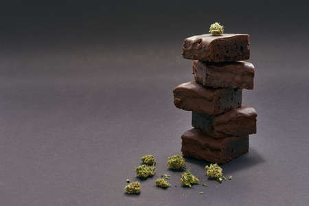 Chocolate cake pieces and crushed marijuana buds