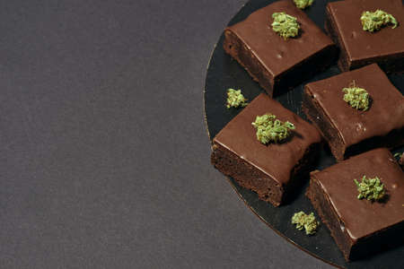 Partial of chocolate cake pieces and marijuana
