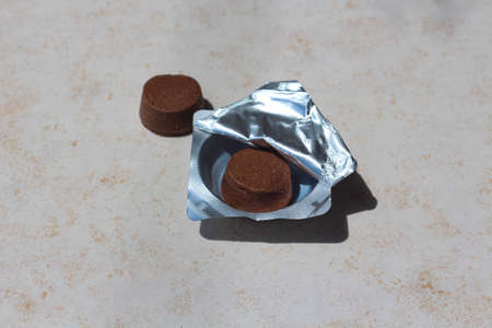 Brown tablets against flea and ticks to protect dogs and cats