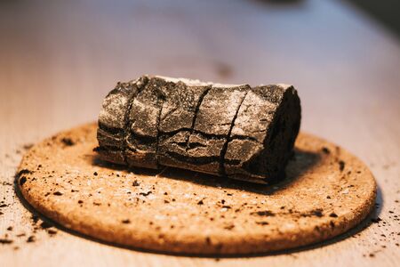 read with activated charcoal on wooden background