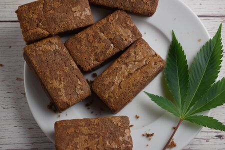 Brownies and cannabis leaf.