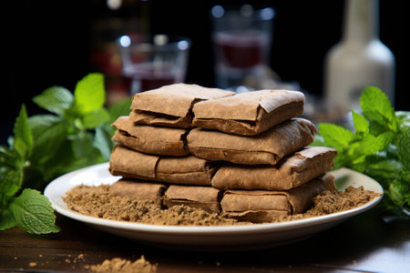 brown cannabis hash closeup. Generative AI.
