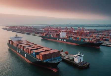 Cargo ships navigating ocean shipping lanes, facilitating the import and export of goods, highlight the dynamic nature of global trade