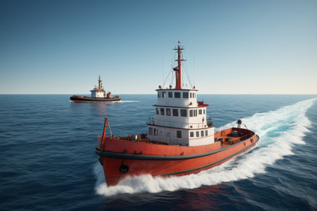 Modern tugboat maneuvering in open sea