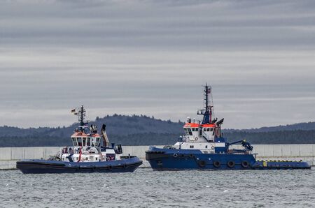Two Tugs Heading out to Sea in Gdynia Poland.