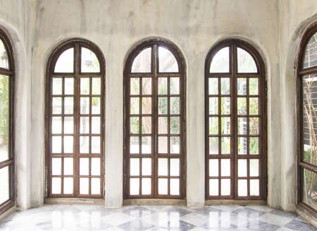 Old large wooden window in the city