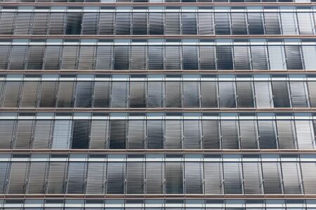 Symmetrically background of grey sunshades at facade modern office building