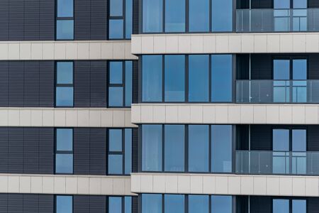 Facade of office building. Windows pattern on the residential building. Modern architecture style