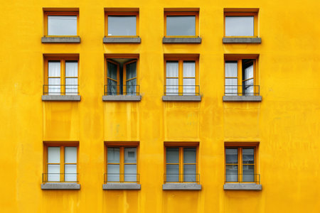 Yellow building facade with windows