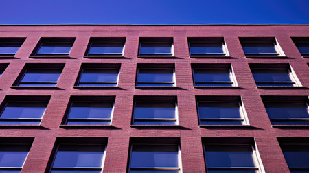 Low angle view of a modern office building with windows and brick walls