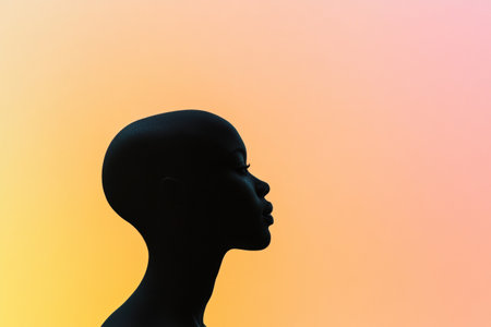 A dark silhouette captures the profile of a person with bald patches, highlighted against a softly illuminated background at dusk.