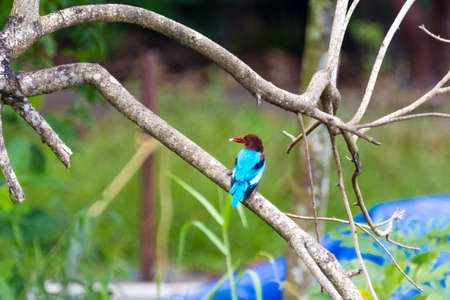 White-throated Kingfisher (Halcyon smyrnensis) perched on a branch