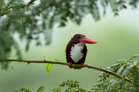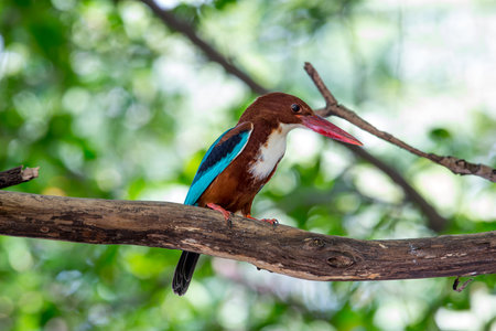 A Stork-billed kingfisher (Pelargopsis capensis), scanning it's surroundings while being perched on a tree branch in the wetlands in the south Andaman island.