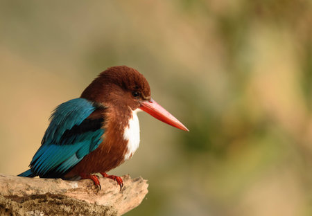 White Throated Kingfisher cleaning its feather early in the morning