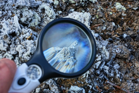 magnifier increases dry gray plant outdoors in nature